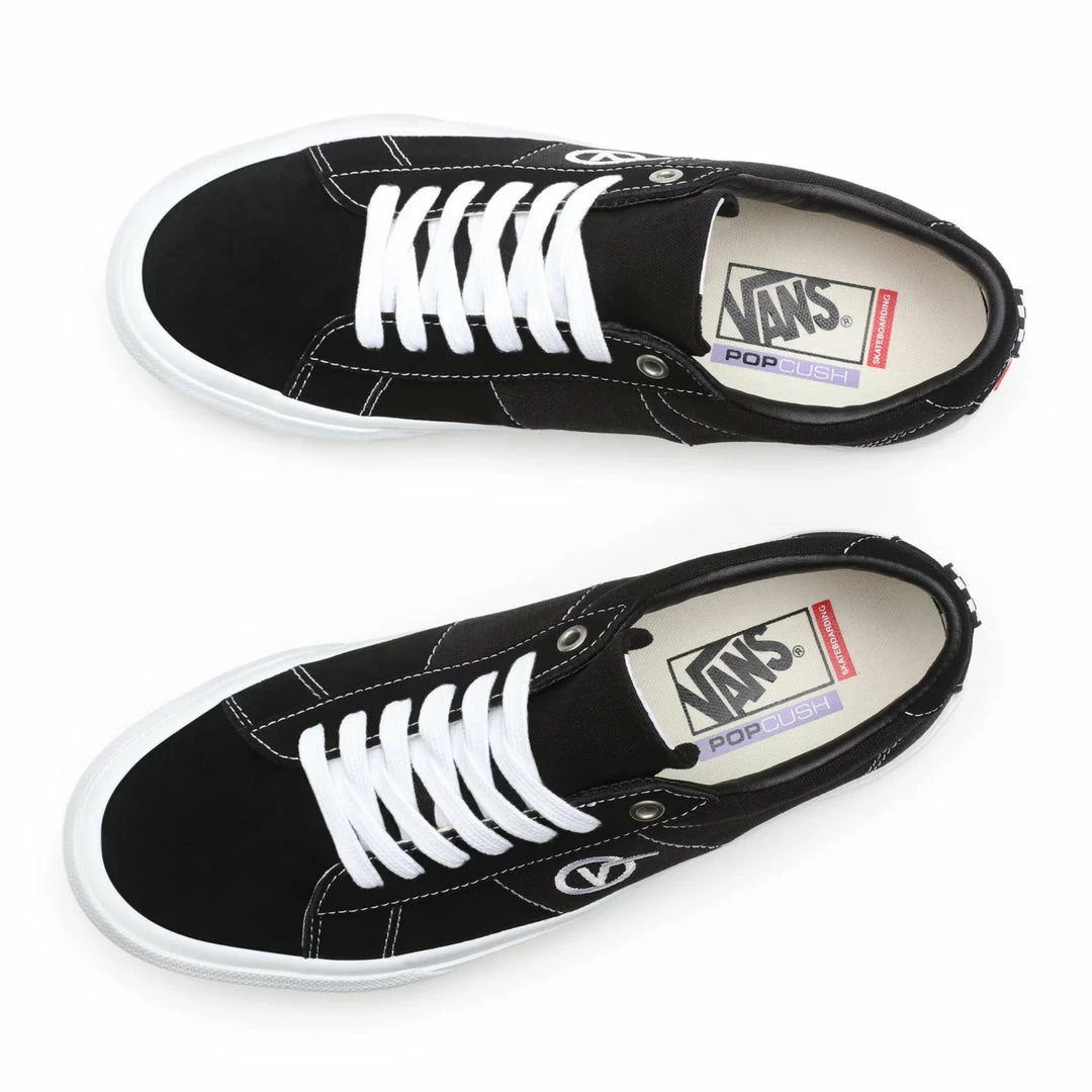 The Vans Sid Shoes-Black/White have been redesigned with skaters in mind. Working with the Vans Skate Team, Vans has added DURACAP rubber to the high wear areas, improved upon their original SickStick gum rubber formula for superior grip, and finally added the new PopCush foam recipe for excellent impact protection, as well as a soft, cradling cushioning.