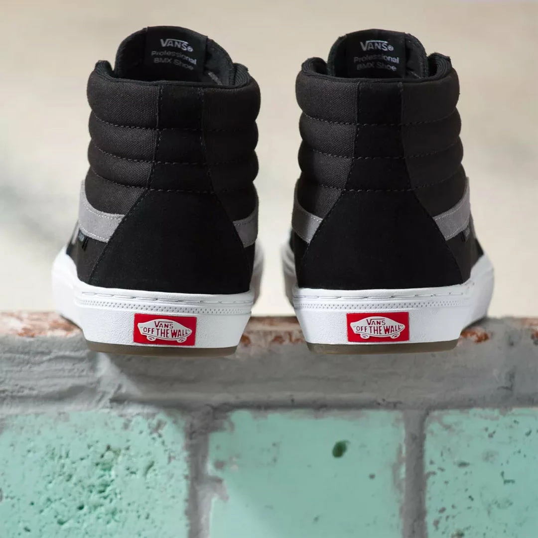 The Vans Sk8-Hi BMX Shoes-Black/Gray/White features Vans one-of-a-kind Wafflecup BMX construction. This ticks all the boxes for a great BMX shoe: support, durability, and pedalfeel. They’ve also added Duracap underlays to help your kicks last longer. Lastly, the sole is Vans classic gum rubber compound, unrivaled for grip and support.