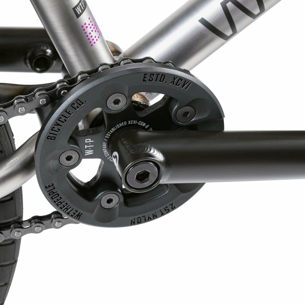 - Sprocket: WETHEPEOPLE “PARAGON” sprocket & nylon guard, 6061-T6 alloy, 25t