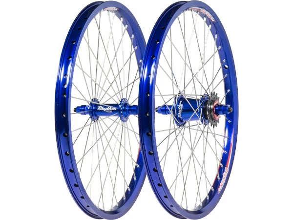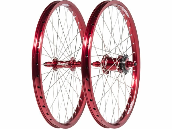 The Crupi Rhythm Section cassette BMX race wheelset features the Crupi Section cassette hubs, Crupi Rhythm Section rims, 15 gauge spokes, and alloy nipples.