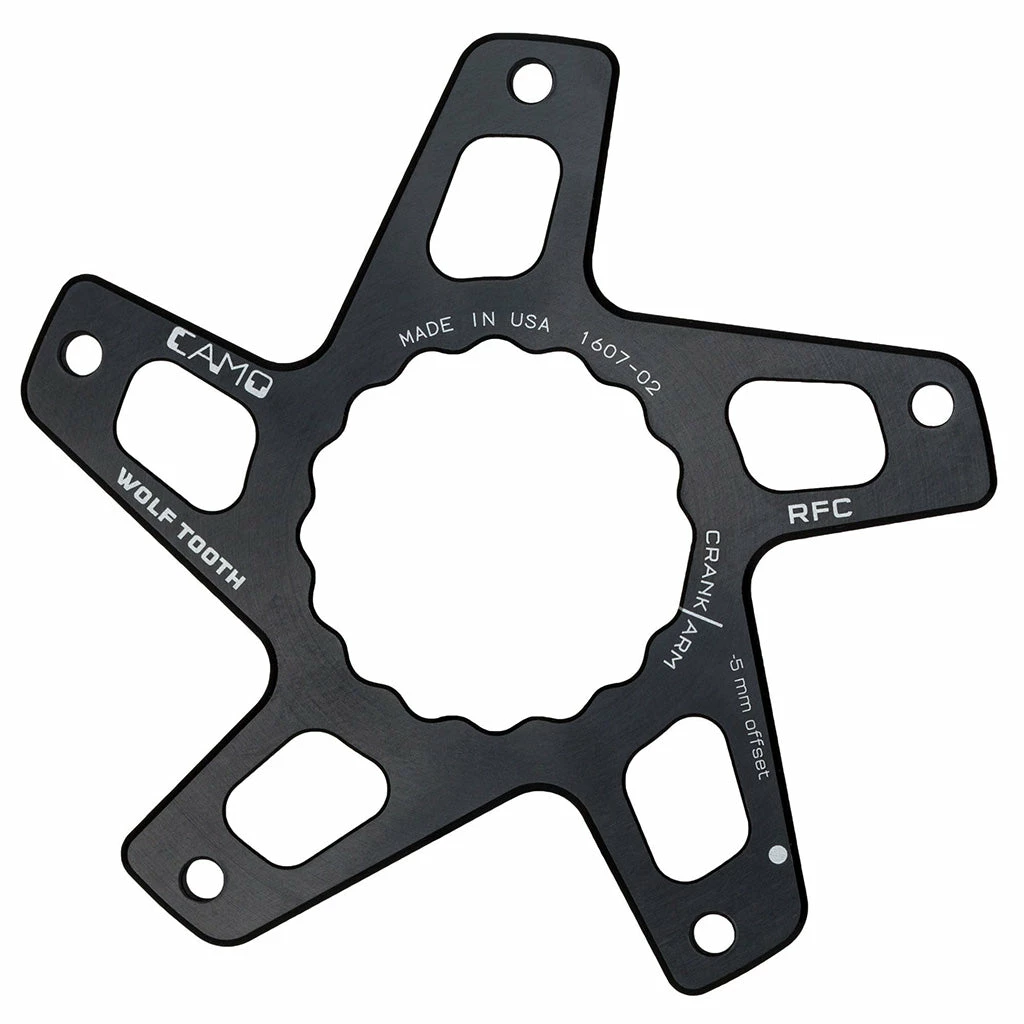 Wolf Tooth and Race Face make the perfect team in the creation of the Wolf Tooth CAMO RaceFace CINCH M5 Boost Spider compatible with Race Face Cinch system. Made of tough and lightweight 7075-T6 aluminum alloy, this spider uses just five bolts and no nuts which makes swapping chainrings quick and easy. This is for CAMO spider only, CAMO chainring sold separately. Made in the USA.